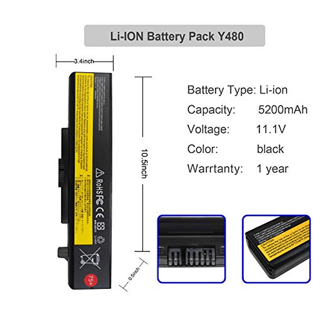 Batería de Computadora Portátil para Lenovo IdeaPad Y480 Y580 G480 G580 Z380 Z480 Z580 Z585, 5200mAh, Serie L11M6Y01, L11S6Y01, L11L6Y01, L11S6F01, L11L6F01, L11P6R01