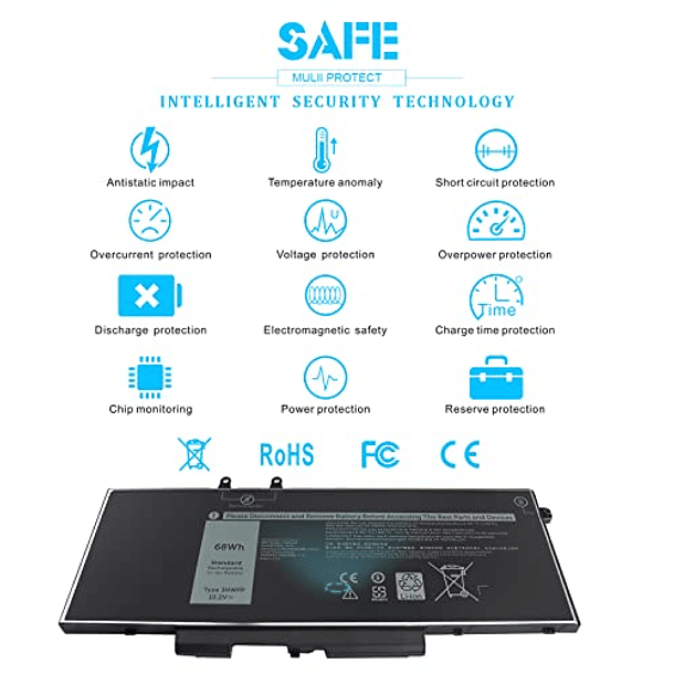 Batería para Dell Latitude 5501 5510 5511 5401 5410 5411 E5410 E5510 E5401 E5501 E5411 E5511 Precision 3551 3541 para Inspiron 17 7500 7506 2 en 1 - 68Wh 3HWPP 15.2V - Negro 451-BCJNNX7N10