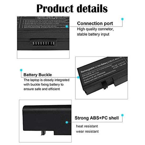 Batería Compatible para Samsung R420 R470 R480 R530 R540 R580 R730 RC512 NP300E5C NP550P5C RV510 RV511 RV515 RV520 RF510 Q320 Q430 - AA-PB9NC6B, AA-PB9NC6W, AA-PB9NS6B, AA-PB9MC6B - 11.1V 57WH