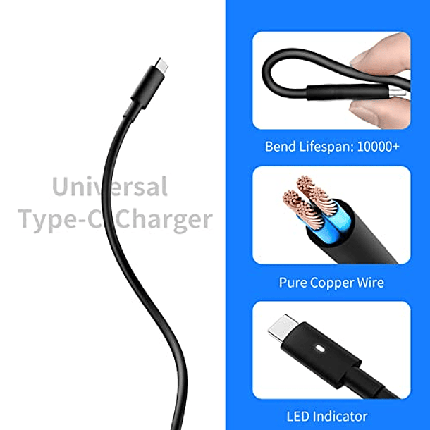 Cargador de portátil USB C de 65 W para Dell Chromebook 3100 3400 5190 3380 Latitude 5520 5420 5400 5285 5290 7400 7410 7420 7210 7275 7390 XPS 13 9250 9360 9370 9380 9350 Cable de alimentación 2 en 1