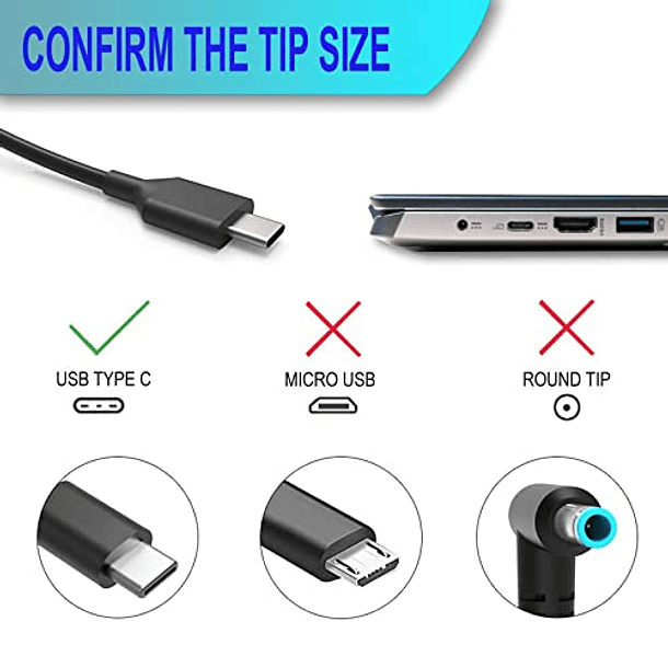 Cargador USB-C para HP Chromebook 11 13 14 G5 G6 G7 G8 EE, Spectre x360 y Chromebook x360: 65W/45W.