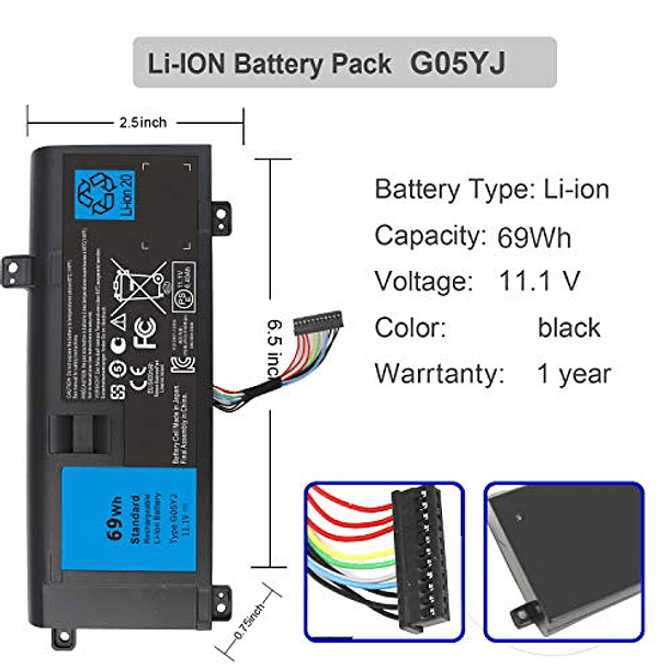 Batería de Repuesto para Dell Alienware 14 A14 M14X R3 R4 14D-1528 ALW14D-5728 ALW14D-5528 G05YJ 0G05YJ [11,1 V 69 Wh]